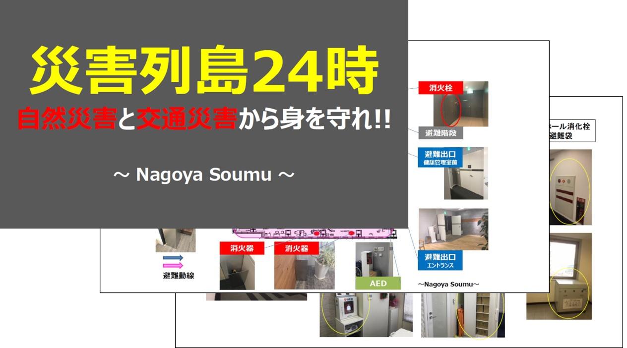 名古屋オフィスでは、社員の防災意識を高めることを目的に、発災時に取るべき行動やオフィスの避難経路、防災備蓄状況などに関する説明会を行いました。