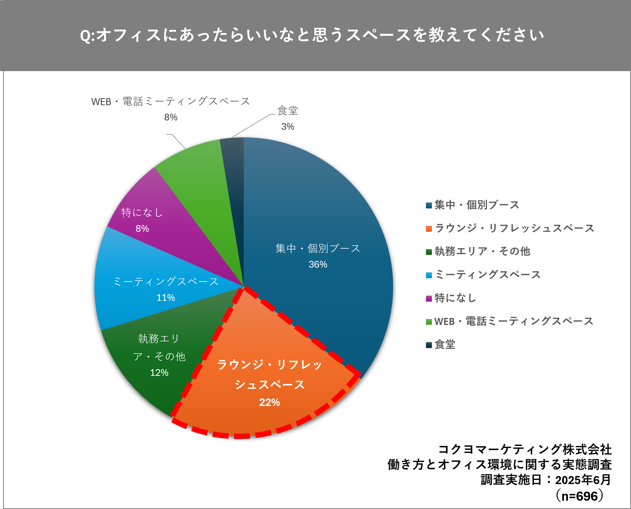 などのスペースを希望する声が見られ、心をリセットできる場所や、気軽にフランクなコミュニケーションが取れる環境への期待が高いことが伺えます。