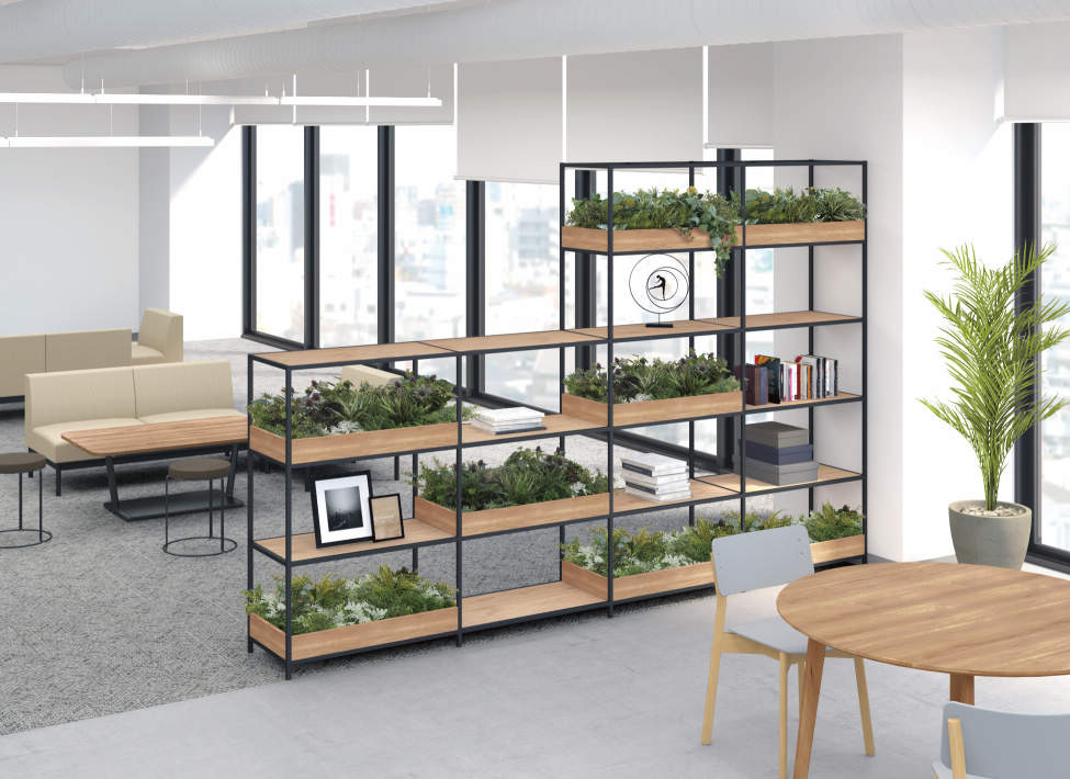 また植物は空間を区切る目安としても機能します。植物と間仕切りを上手く組み合わせることで、視線を緩やかに仕切ることもできるため、集中しやすいオフィス環境となりやすいです。