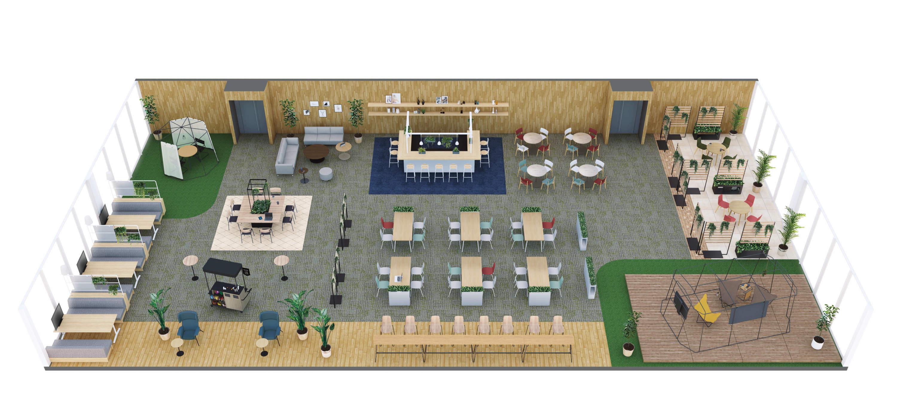 これらの働き方は、テレワークの浸透によるコミュニケーション課題を解決する手段として注目されています。たとえば、フリーアドレスで毎日隣の席に座る人が変わることで、テレワークにより接点が減ってしまった他部門メンバーと新しいコミュニケーションが生まれる可能性があります。また、コミュニケーションを促すために、執務スペースは最小限にし、社内カフェのようなリラックスしながらコミュニケーションができるスペースや、オフィスでも周囲への音漏れを気にすることなくWEB会議ができる専用ブースなど、テレワーク時代ならではの課題に対応したスペースを設置する企業もあります。