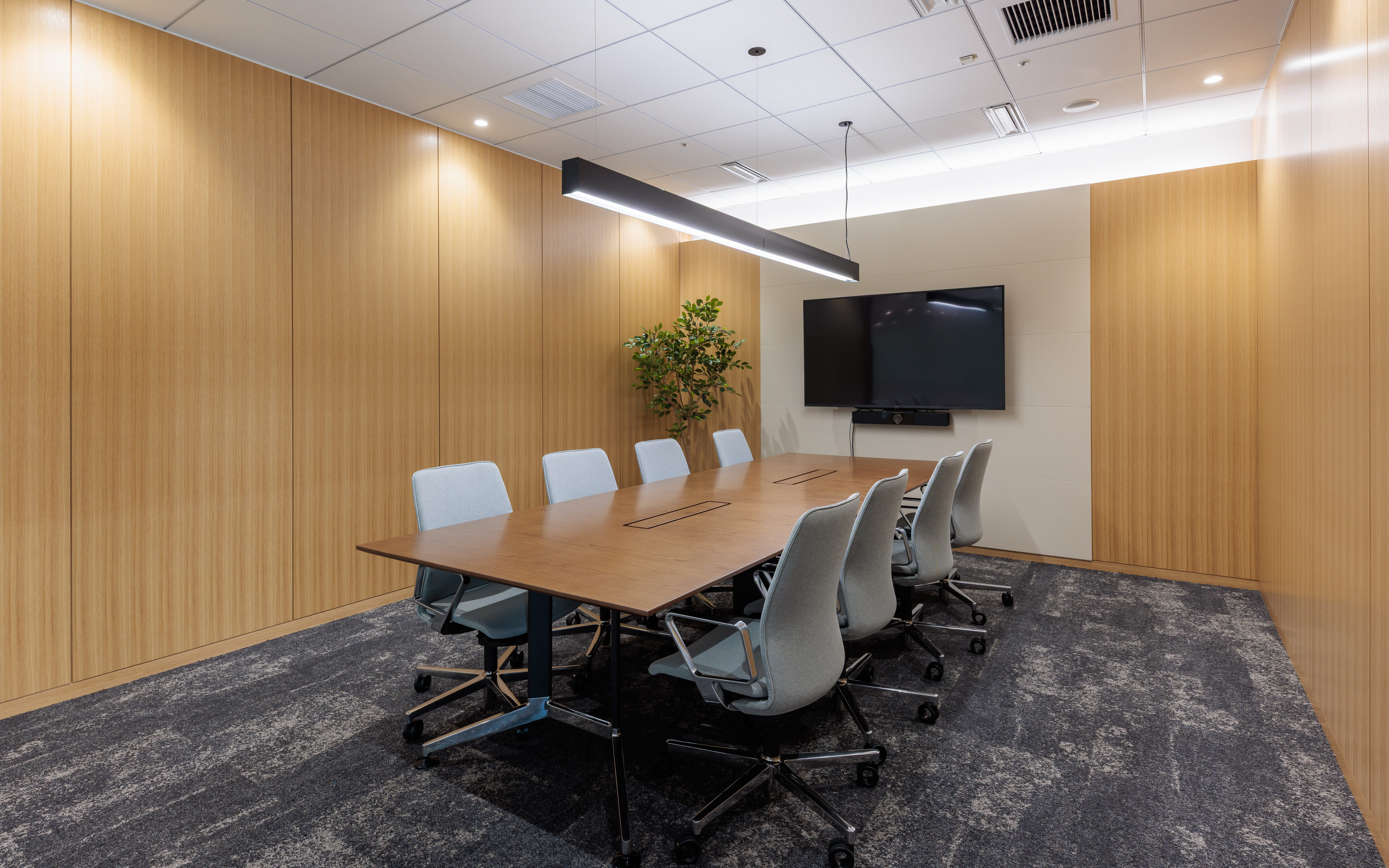 吸音性と意匠性を兼ね備えたFAB-ACEでアクセントをつけています。