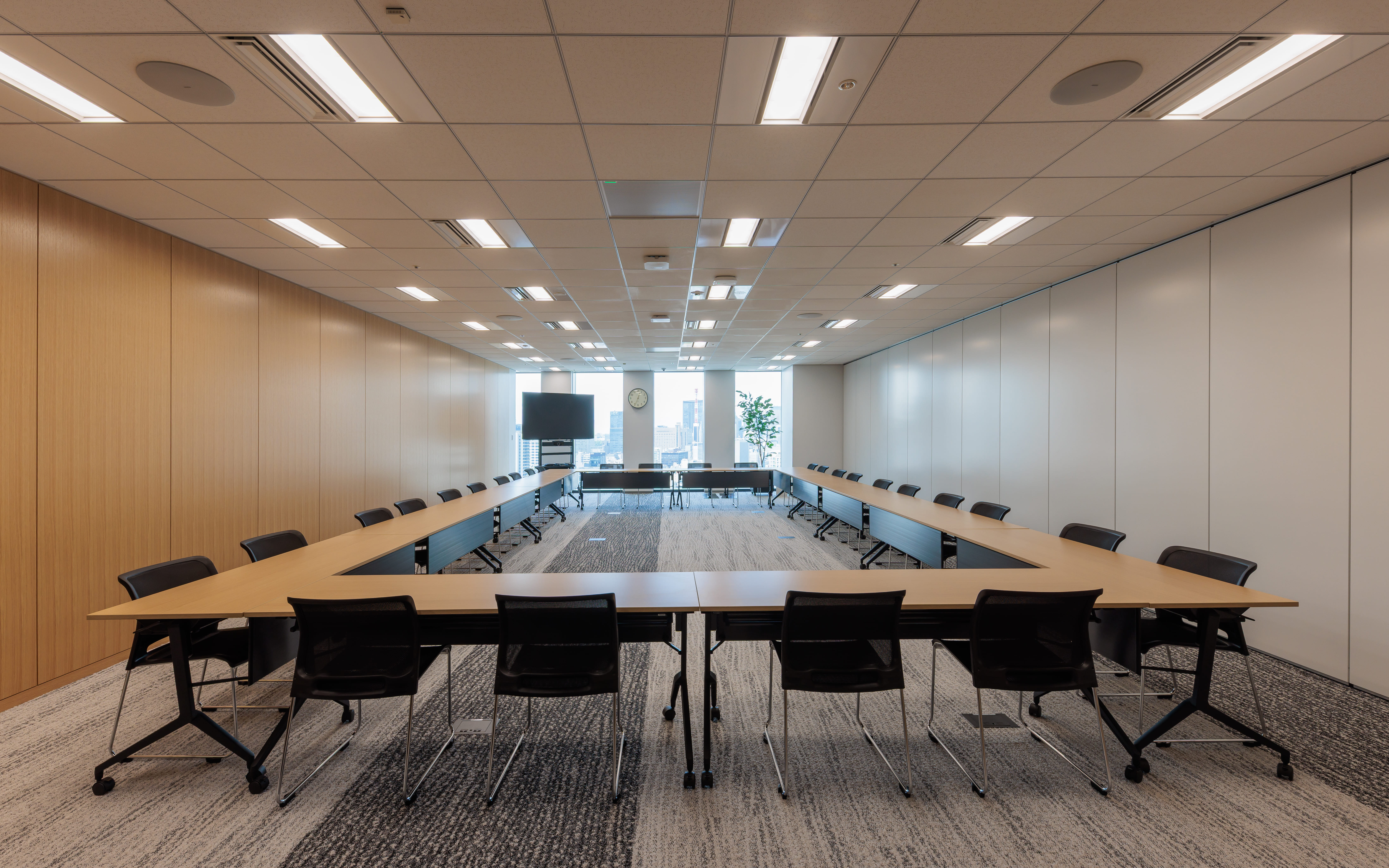 長机と軽量の会議イスを組み合わせることで、会議の目的に応じて部屋のレイアウト変更が可能です。