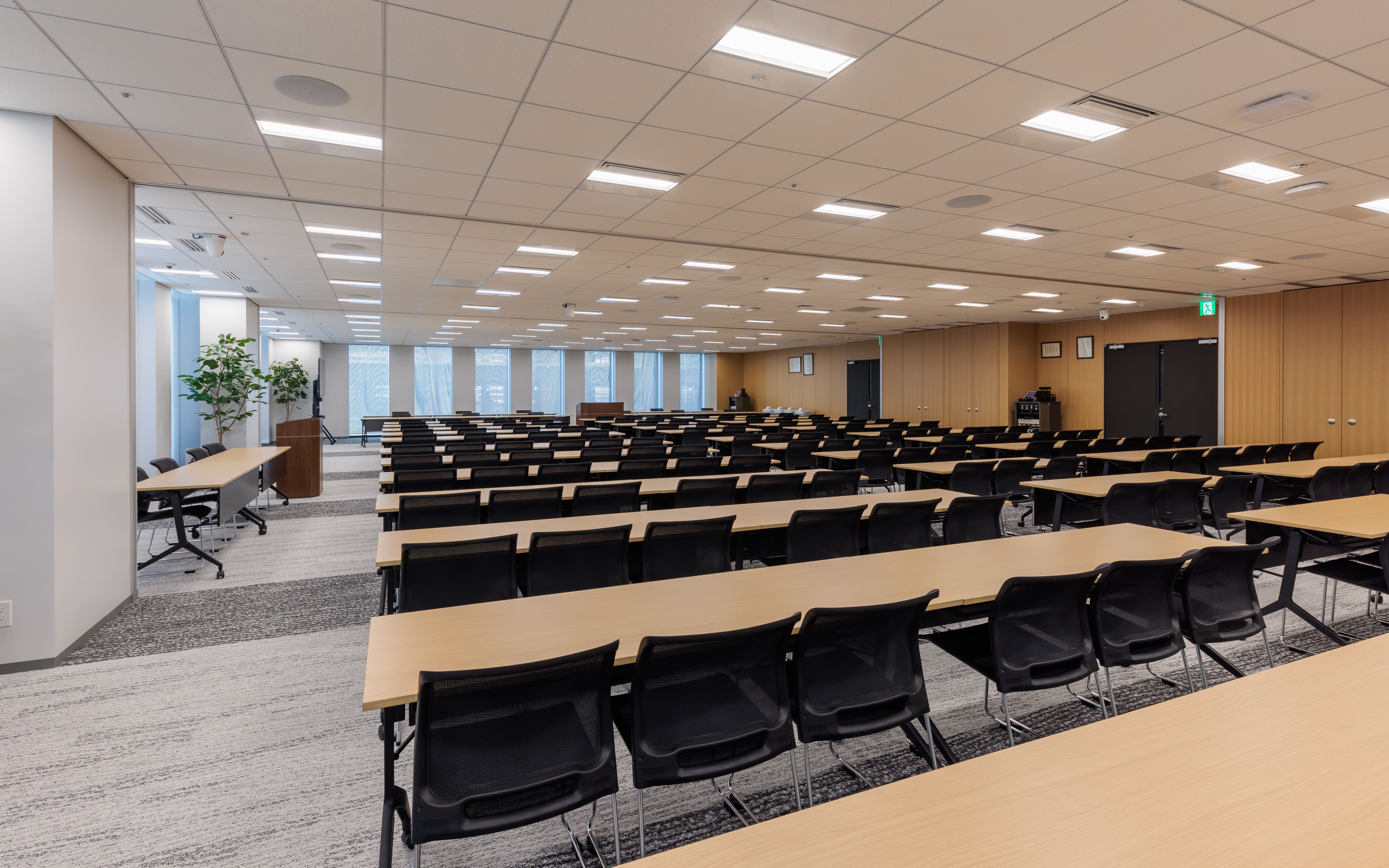 可動間仕切りで構成されたセミナールームは最大4室を連結可能。