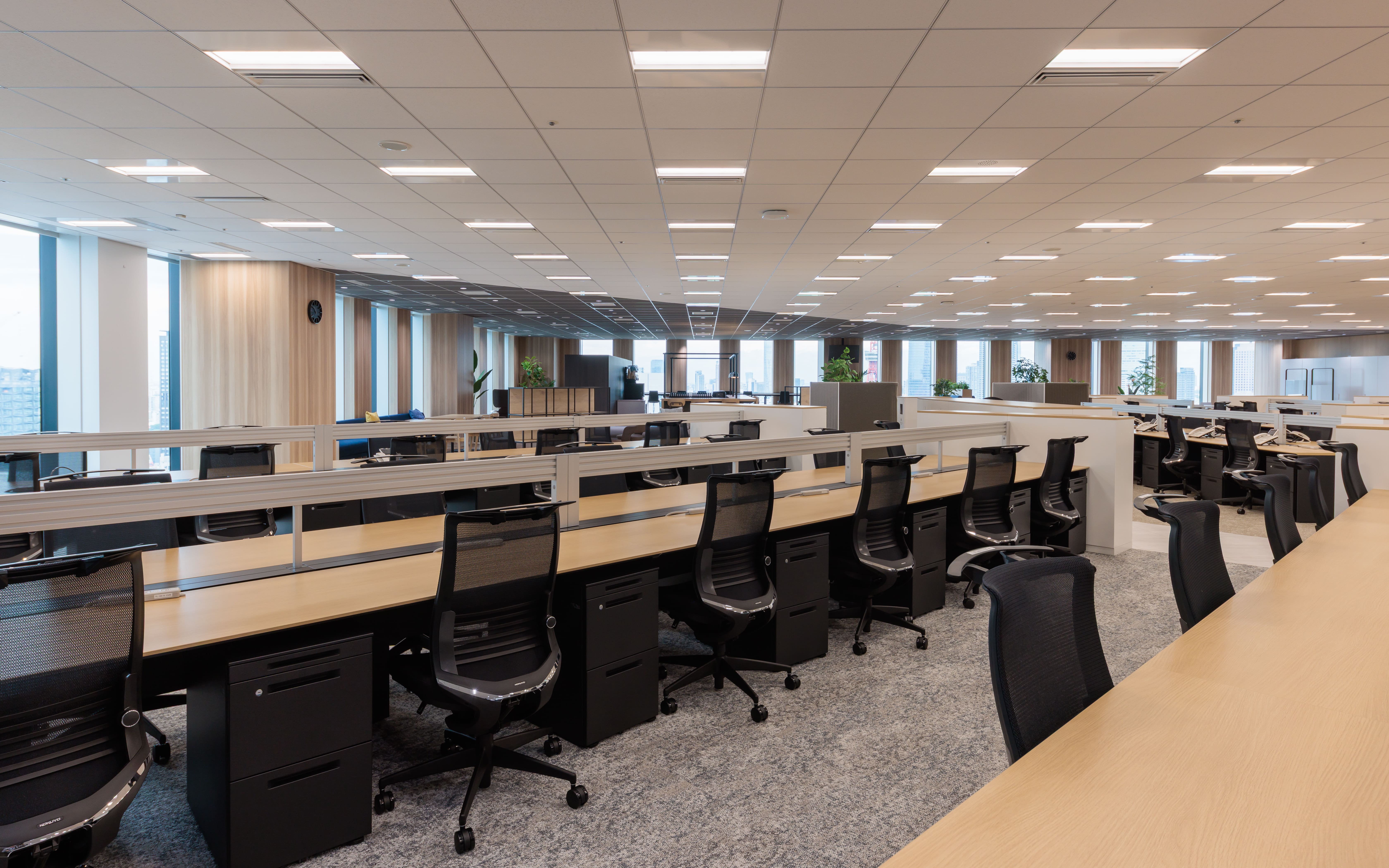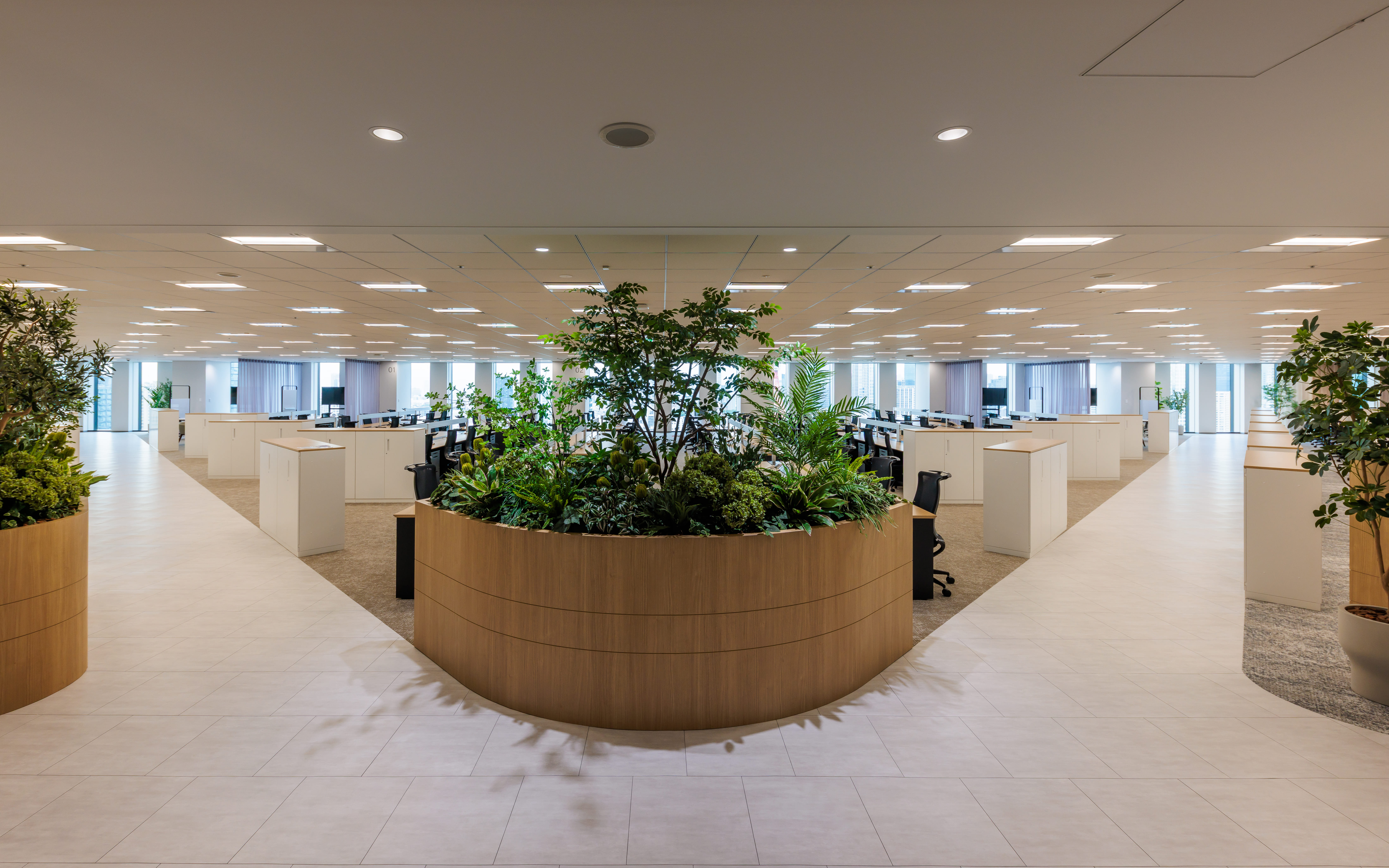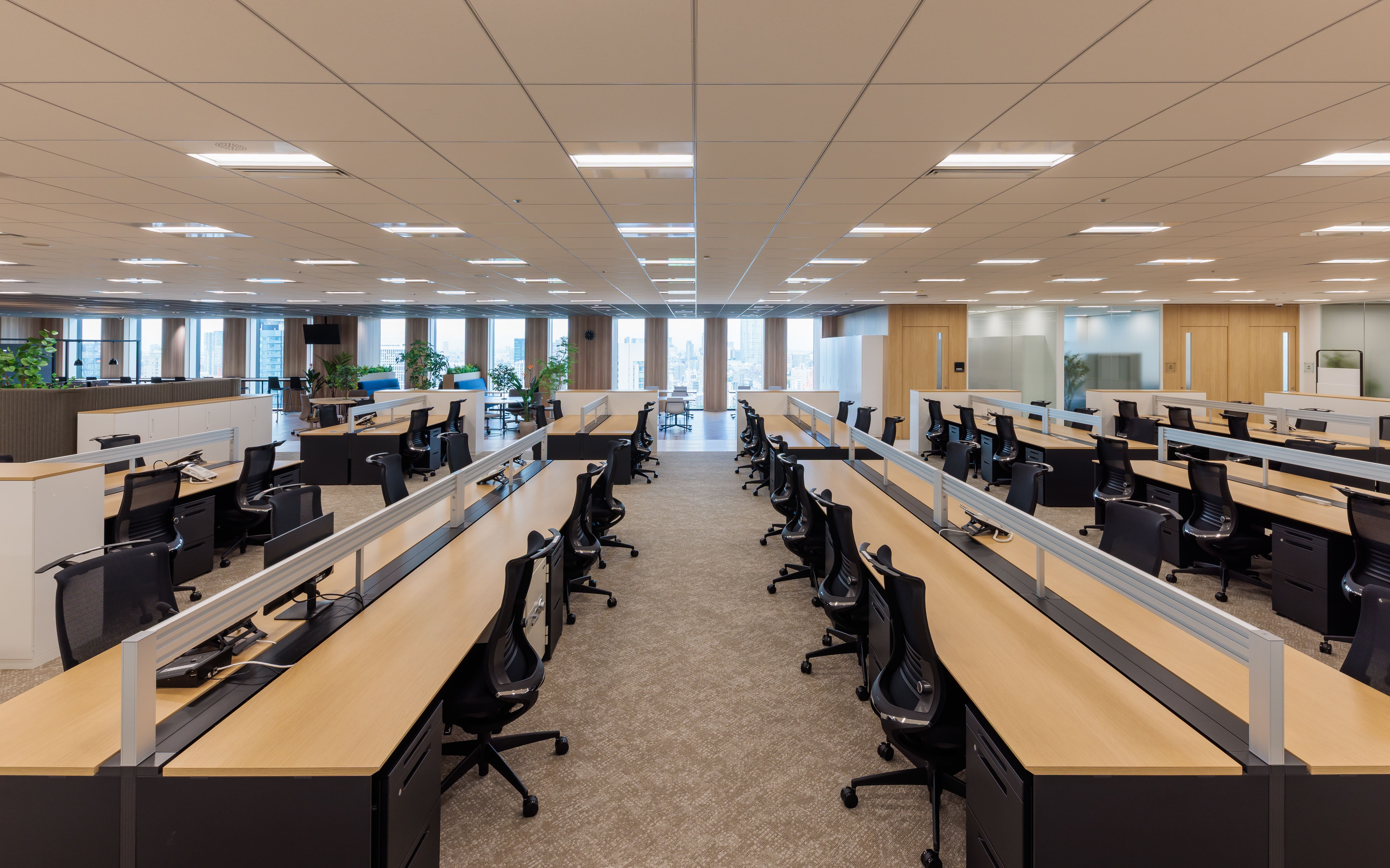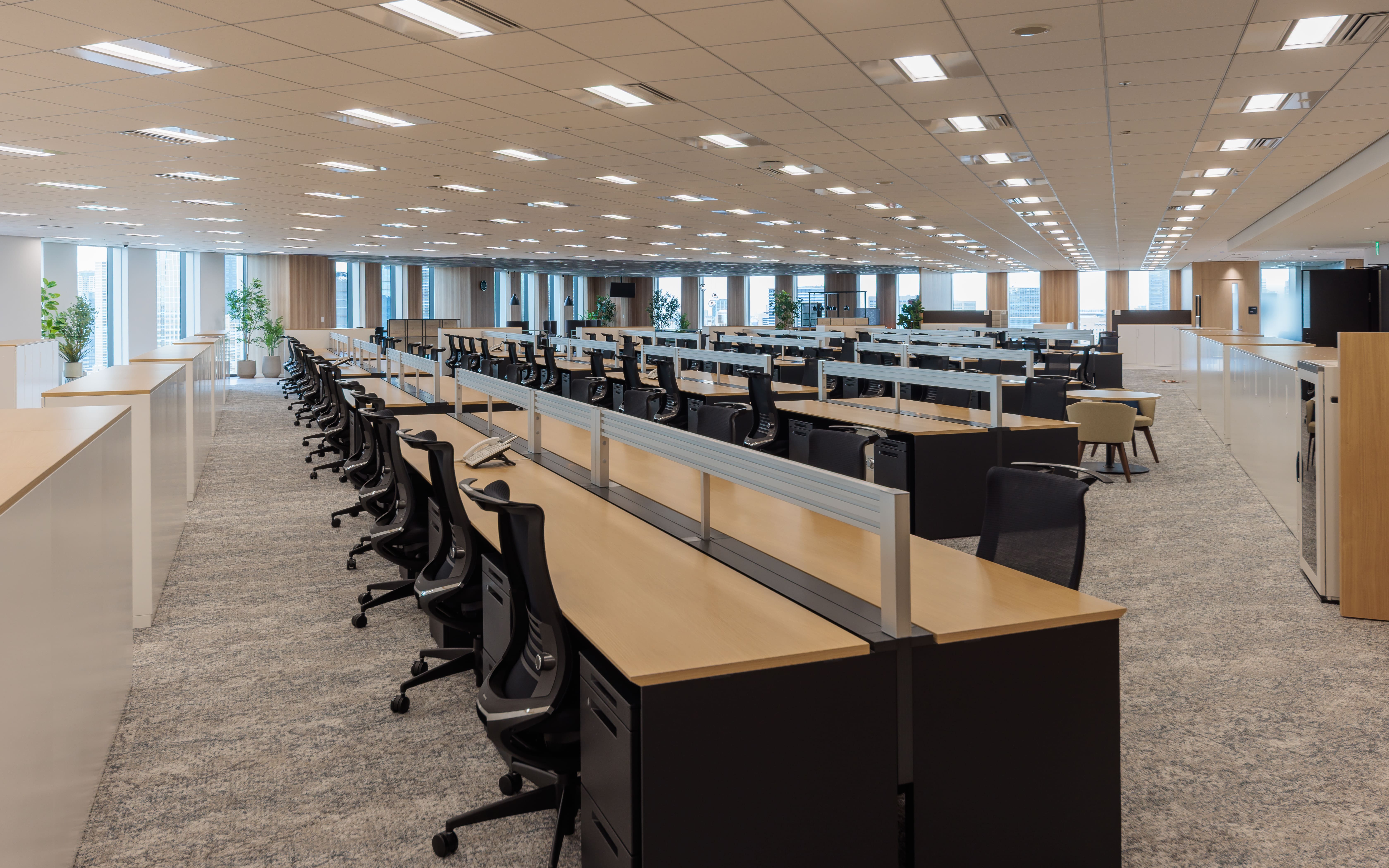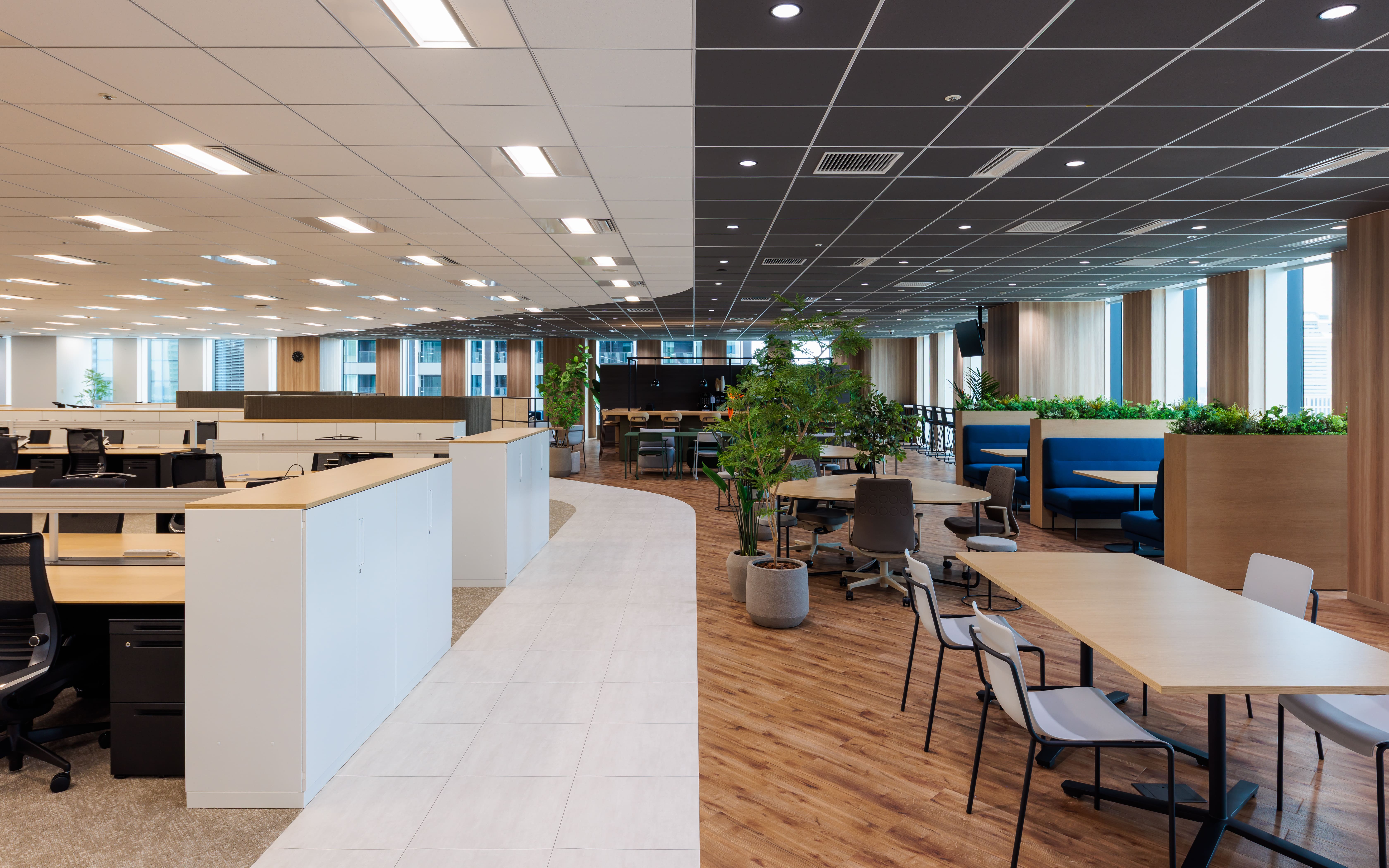 ナナメに広がる動線により、開放感のある執務空間を演出します。