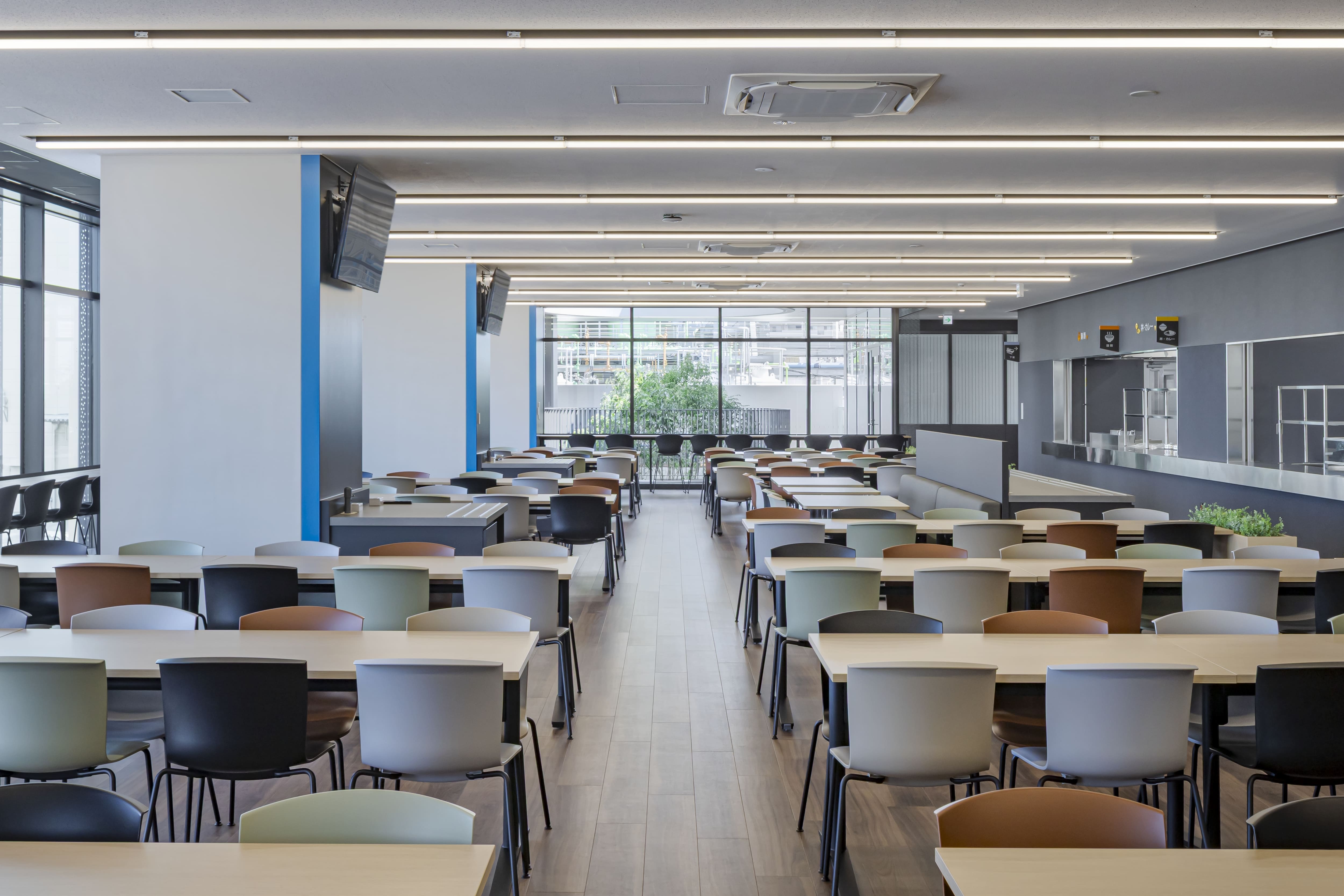 食堂では、椅子にカラーバリエーションを持たせてランダムに配置し、明るい雰囲気づくりができたこと、さらに会議室や執務エリアではフロアごとに椅子の色を変えてわかりやすくしたことなど、機能性だけでなくデザイン性も高められた点は、担当者としてとても良かったと感じています。